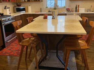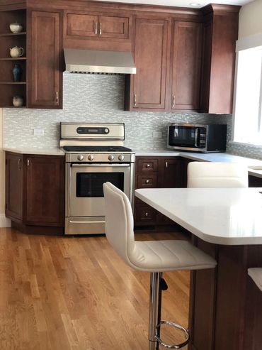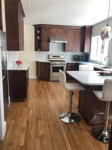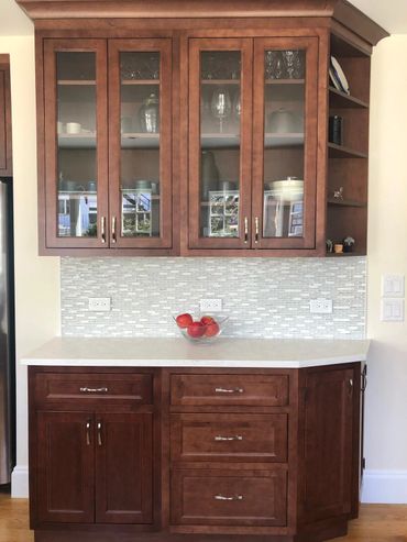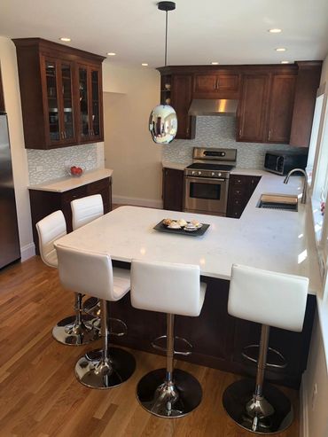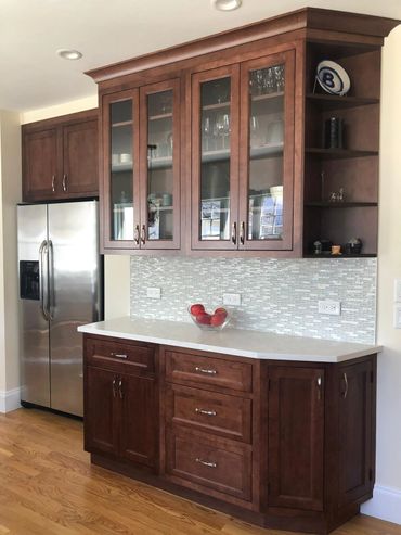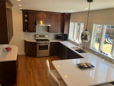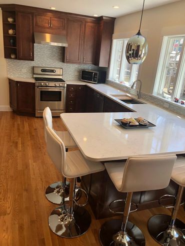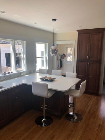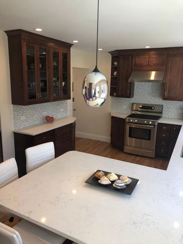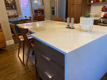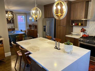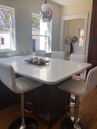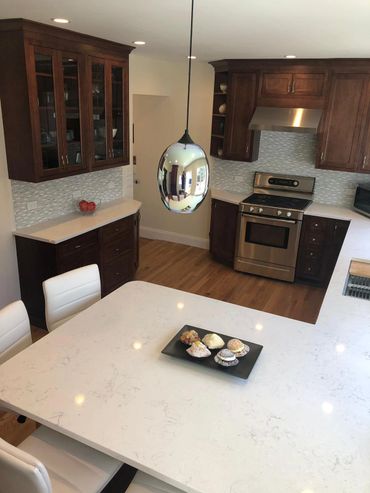 Project -Fieldstone Lagrange Maple Chestnut Countertop Colorquartz Bianco Cristal.