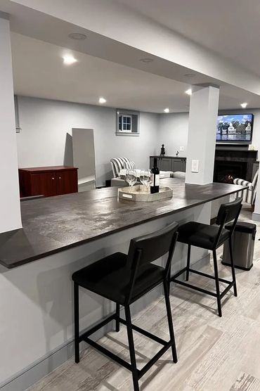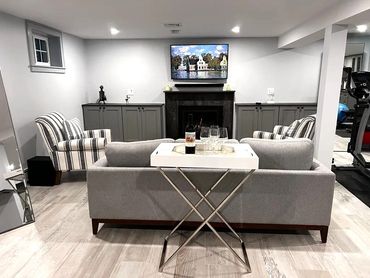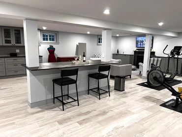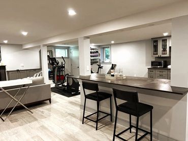 Customers wanted a place with different areas where the whole family could share simultaneously. The area was divided into an exercise, arts and crafts, storage, mini-workshop, and entertainment. As a bonus, we create a full bath with a shower
