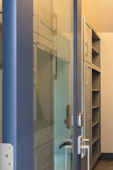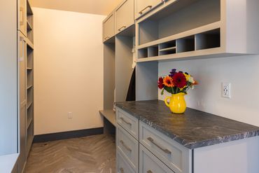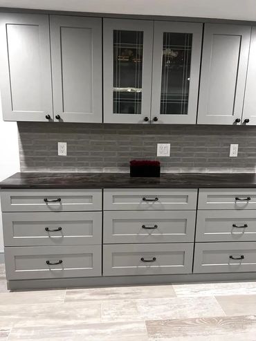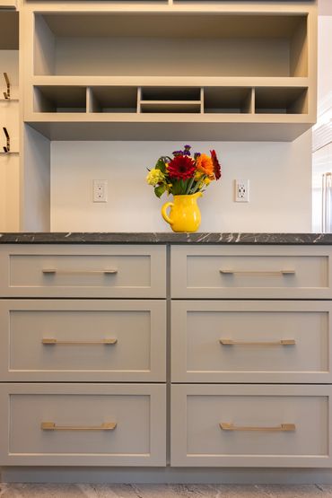 Cabinets from Waypoint Living Spaces 650 F painted linen. Countertop Caesar Stone Pebble